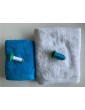 Eponge 100% coton cardé. Fil prélavé tissé teint en pièce avec liteau jacquard.