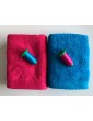 Eponge 100% coton cardé. Fil prélavé tissé teint en pièce avec liteau jacquard.